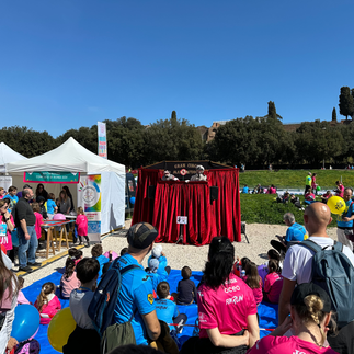 La Compagnia Mangiafuoco al Circo Massimo la matina del 17 Marzo con due spettacoli di burattini. Dopo la partenza della maratona di Roma 2024, nel padiglione allestito da ArciRagazzi, ci sono stati gli spettacoli del "Circo dei Burattini".